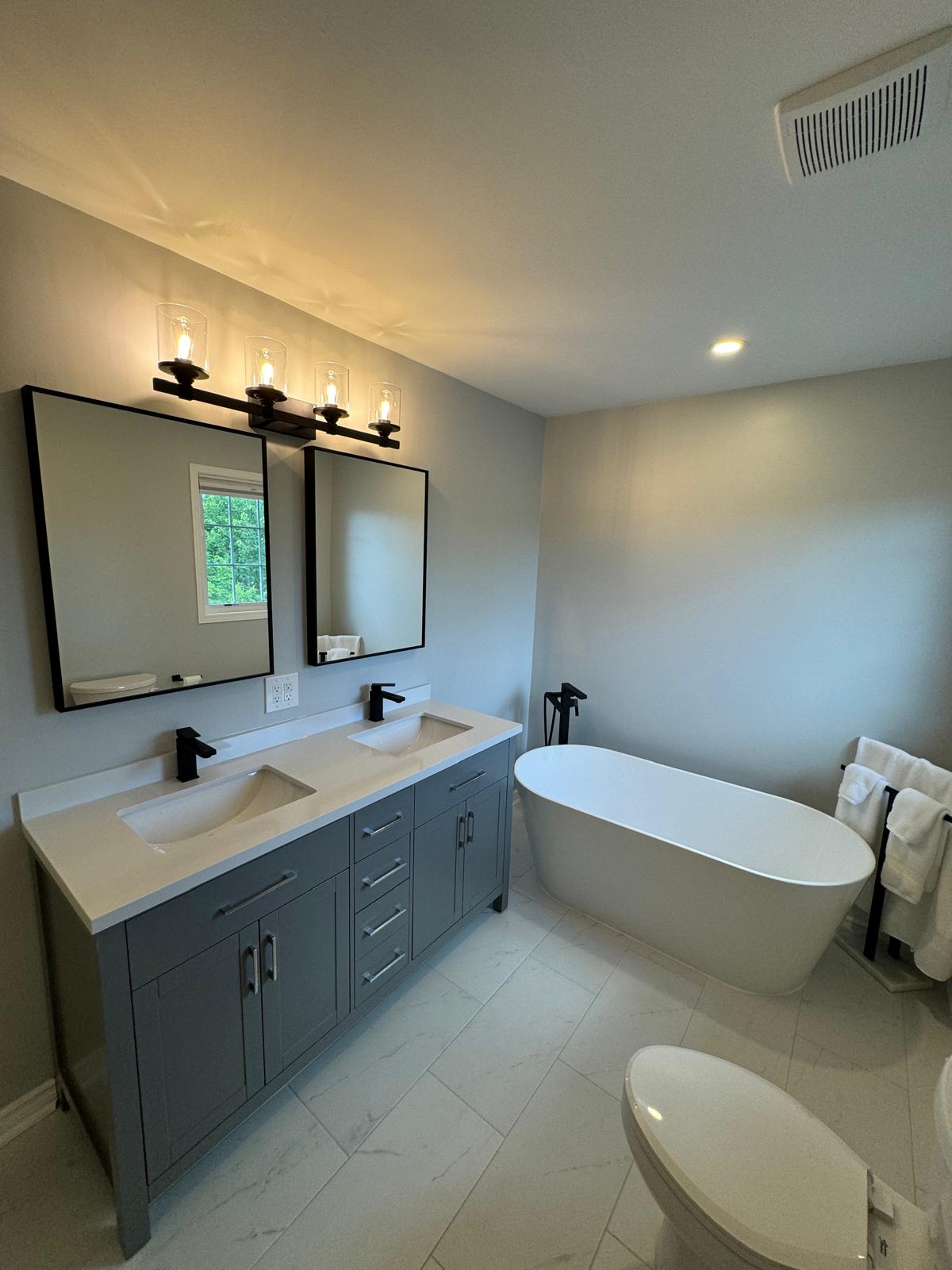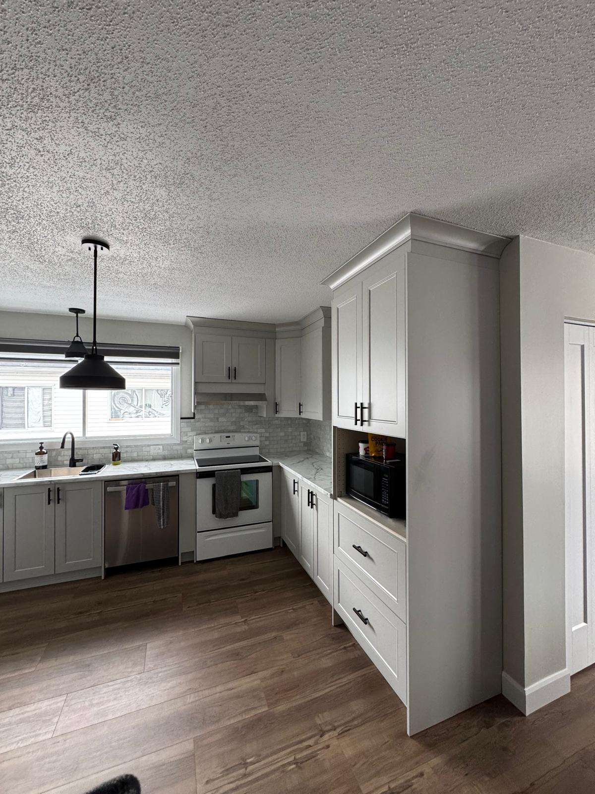 Drywall, mudding, and painting with professional finishing for a clean and modern look.